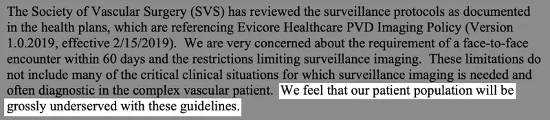 In a response to questions, a Cigna spokesperson provided a statement on behalf of EviCore. “Simply put, EviCore uses the latest evidence-based medicine to ensure that patients receive the care they need and avoid the services they do not,” it said.